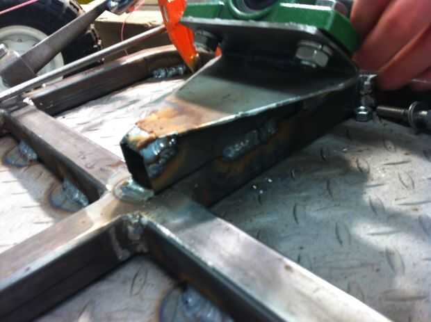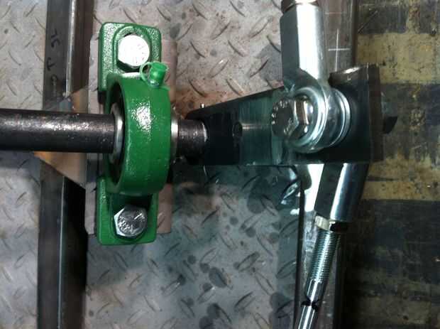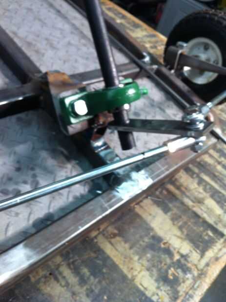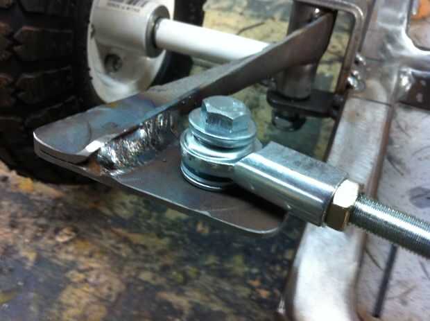 Para este paso, tener un pedazo de acero fije al eje de la dirección y los tirantes a la parte superior de la misma. A continuación, conecte el otro extremo de los tirantes para el eje. Para sujetar el extremo del eje del volante, puse un almohada bloque allí y también fabricar un soporte para él.
