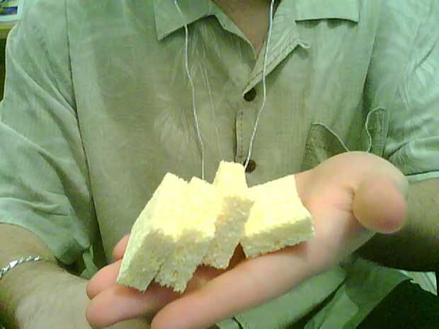 1. es decir, comenzar por cortar una esponja de tamaño justa en cuatro trozos más pequeños.
