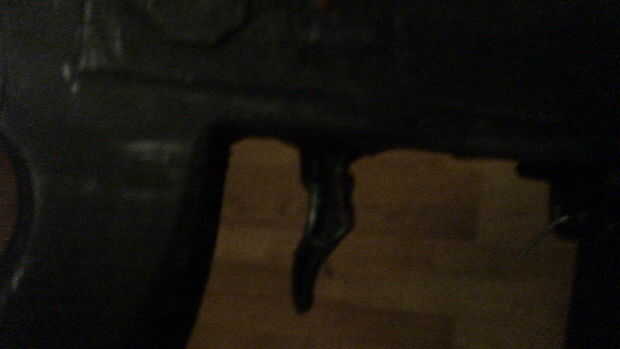 El gatillo es solo una pieza de plástico. Perforó un agujero en la madera y caliente pegado en.