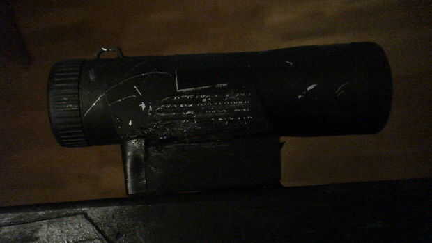 El silenciador es un pequeño tubo de PVC pintado de negro. Para que se ajuste bien, envuelve el extremo del tubo con cinta.