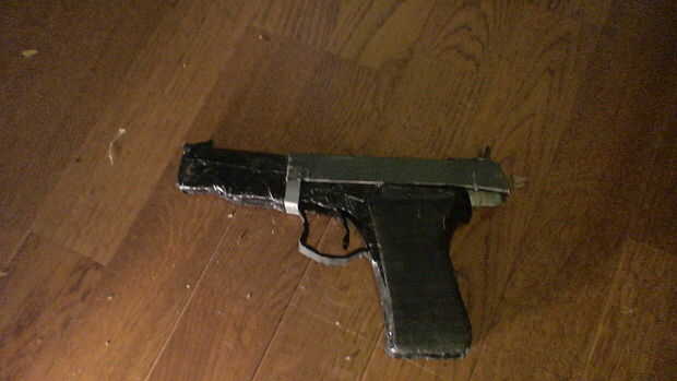 1 dibujaba la forma básica de la pistola en la cartulina y cortar itout luego remontar otro de él y recorte.