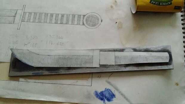 Así que usando geometría hacen este diseño 30mm grueso cuchilla (aproximadamente 5 3/4" lámina) y luego medir en 1/8" Ha-Machi y Mune-Machi (muesca delantera y trasera muesca en inglés) entonces medir una línea hacia fuera recto unos 30mm o así para el Habaki (Collar) luego de la forma cónica el Tang, todo simple de hacer, si usted está luchando para conseguir el concepto basta con ver un japonés lámina desnuda Tanto usted cogerá en ningún momento.