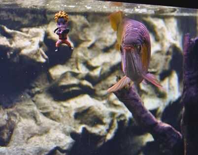 No hay reflexión. Generalmente tomar fotos por la noche y sólo el acuario tiene las luces encender.