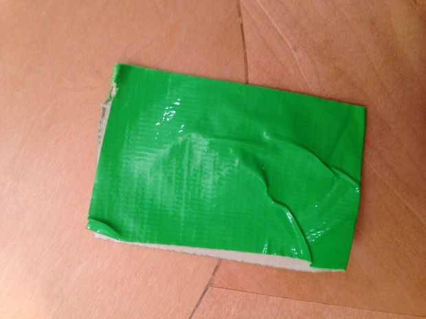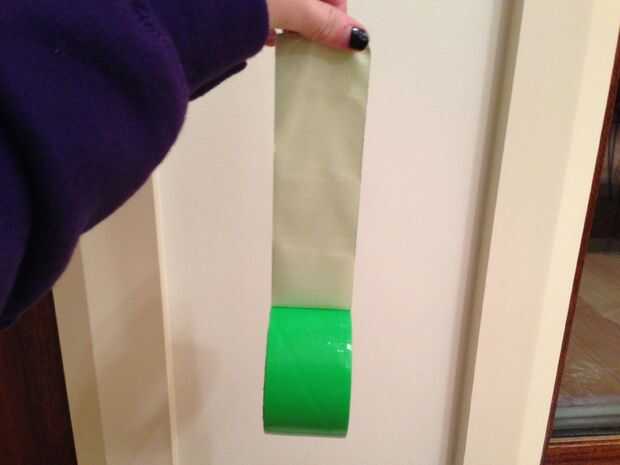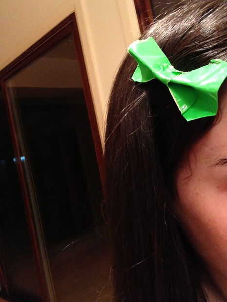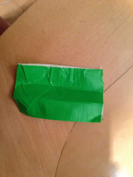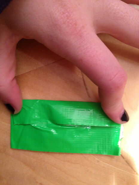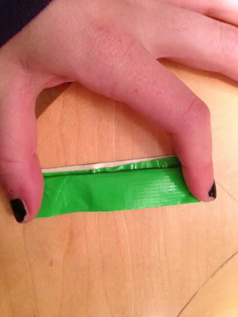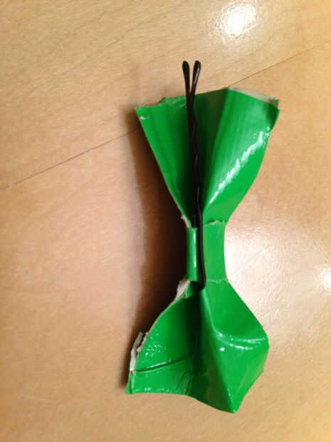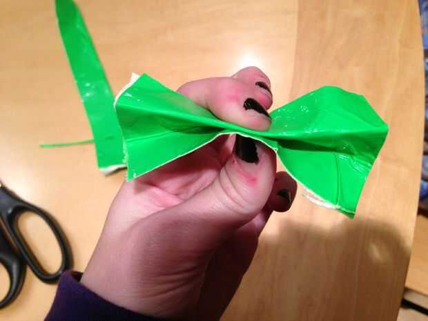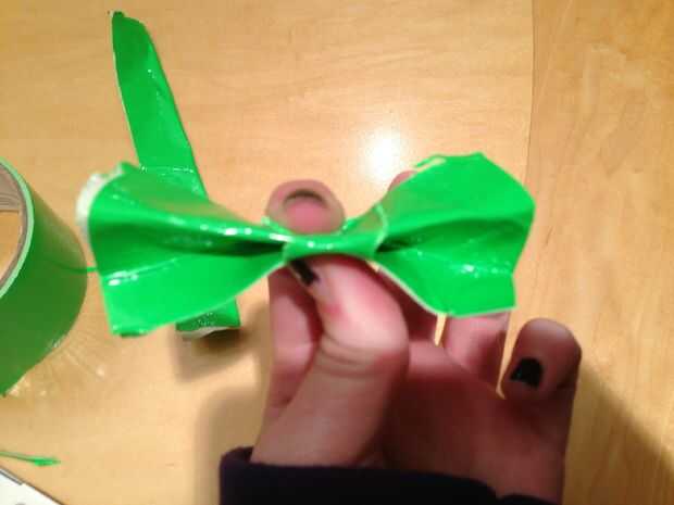 4. pellizcar el centro y envolver un trozo fino de la misma cinta alrededor del centro de la cinta de pato.