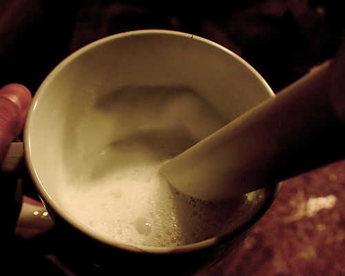 3/4 de taza de leche caliente (que puede vapor esto si tienes las herramientas)