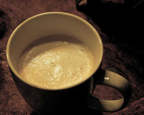 OPCIONAL: Si tiene un tubo para espumar, entonces utilice. Si no puede meter la leche en la licuadora y espuma durante un par de minutos, o usar una licuadora de mano (que es lo que hice, ver fotos) y hace agradable y espumosa.