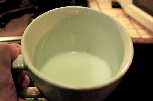 Tomar 3/4 de taza de leche, cubierta y microondas (o calor) durante dos minutos.