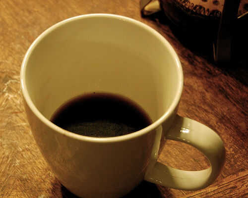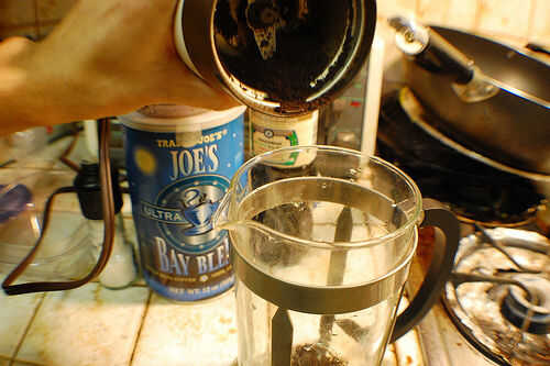 Si usas la prensa francesa: mezclar el agua caliente y molidos, espera un minuto, extracto de café, vierte en la taza. (supongo que si tienes una prensa francesa, usted debe saber cómo funciona)