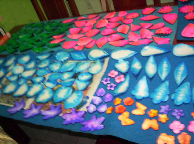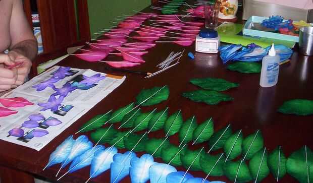 3 - ellos necesitan pegar el alambre en la parte posterior de las hojas y deje que se seque;