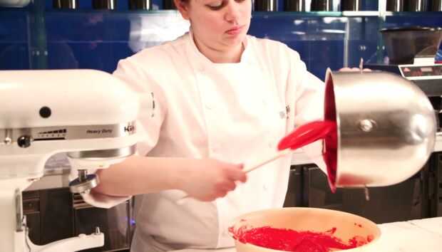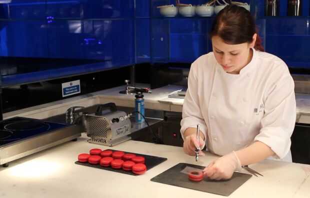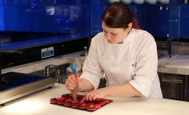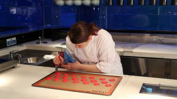 Sarah Frankland, jefe pastelero de la casa de té-estrella Michelin chino dim sum Yauatcha nos muestra cómo hacer Macarons de mandarina roja.
