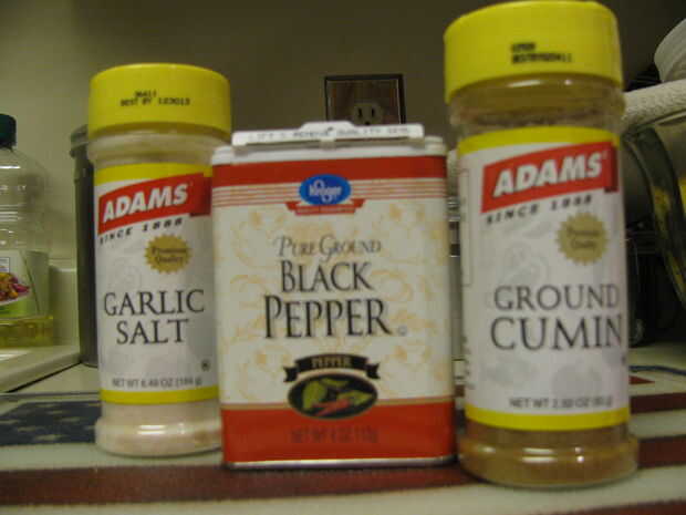 8. Agregar 1 cucharadita de sal de ajo y 1/2 cucharadita de pimienta a la sartén.