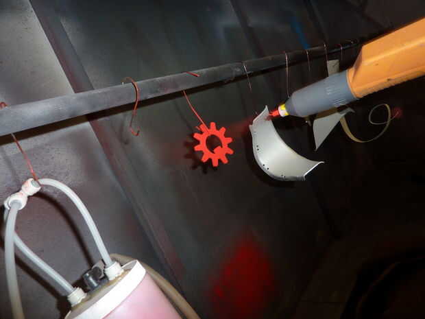 Pcapa de capa es una gran manera de larga duración para cualquier pieza de metal de color. Agradezco a VW como la primera compañía para utilizar este método para su producción y compartirlo para que puede ser ampliamente utilizado por muchas industrias, así como a un artista común y manitas como yo. El proceso es super tolerante, rápido, divertido y extremadamente durable. Utiliza polvo de poliester muy fino y un proceso de electro-estáticos a adherirse al metal.
