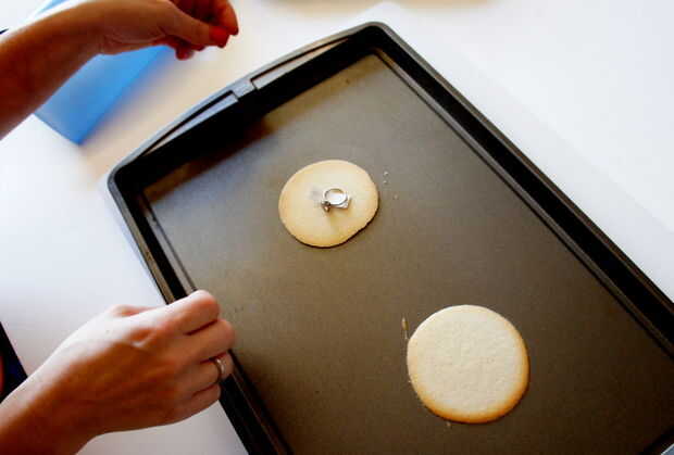 Mientras se hornean las galletas, prepárate la lata del mollete, fortuna de propuesta de matrimonio, espátula y anillo de compromiso.