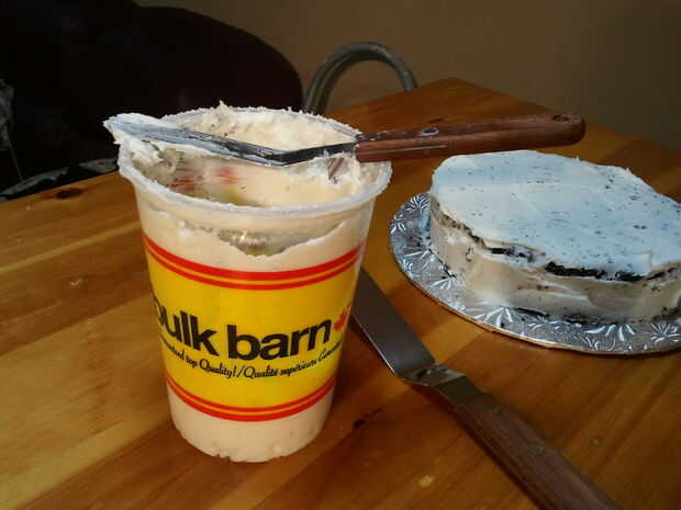 En cuanto a la formación de hielo va, solía usar las cosas de la tienda compraron. Pero encontré un granero de bulto que tiene una bañera grande de crema de mantequilla glaseado. Glaseado de crema de mantequilla es solo facilitan el trabajo.