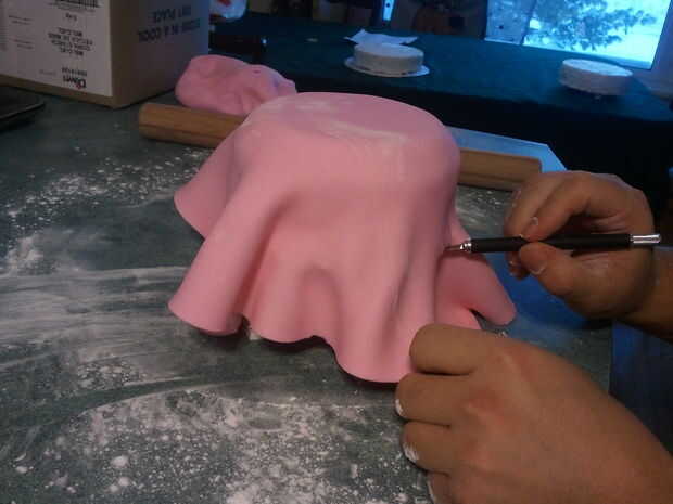 No te preocupes si la cornstach entra en el lado visible del fondant, cepillos de fácilmente con una toalla seca.