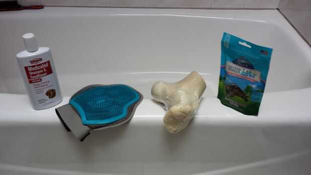 para la historia completa detrás de por qué yo quería hacer mi propio shampoo de perro, por favor visita el post original en http://fabyoubliss.com/2012/06/19/how-to-make-your-own-great-smelling-dog-shampoo/.Aquí es lo que necesitarás si quieres hace