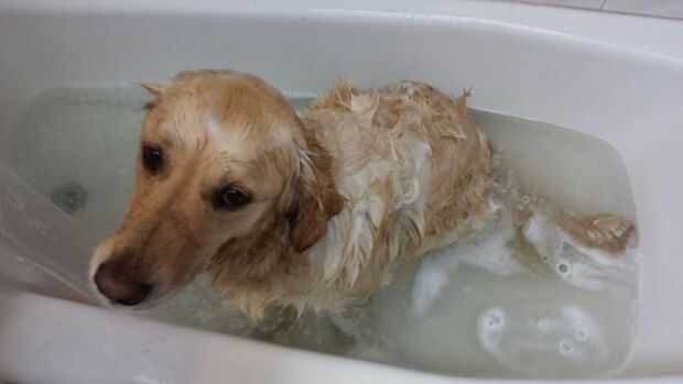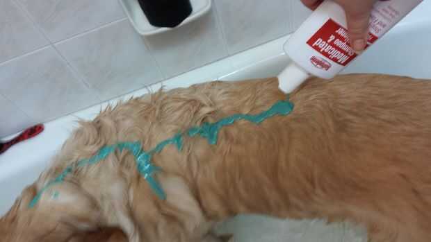 Una vez que su perro se enjabonó, enjuagar el champú de su capa y repetir el proceso con el acondicionador, si usted está usando.