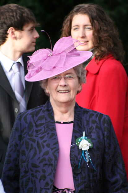 Mamá entonces hizo los ramilletes y los orificios de botón. Hay una foto de mi abuela usando uno de ramilletes de flores de las damas y luego un cierre para arriba del agujero de botón de Jake.