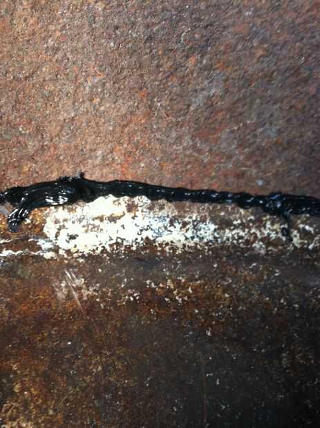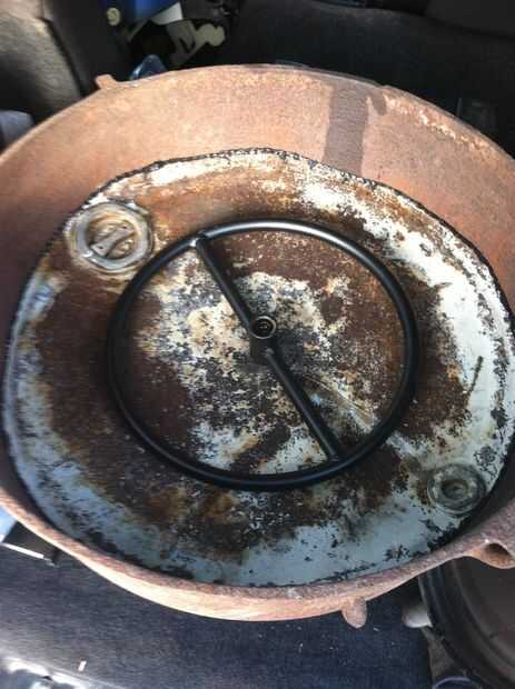 El paso final y esto es importante, es para llenar los vacíos que podrían permitir bajar bajo el quemador de gas. Con el peso de la arena en la parte superior, el gas va a querer escaparse hacia abajo, esto debe evitarse o dispones de un cañón y no un hoyo de fuego. Para sellar la mina hasta utiliza a alta temperatura RTV y me fui todo el borde de la tapa del barril donde contactó con el caldero. Ser paciente y dejar curar durante 24 horas.