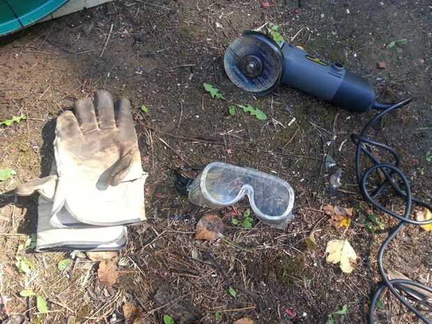 Yup... que es mi aparejo un dólar :^)Acabo de comprar una parrilla nueva...Encontré un completo asador situado en una venta de yarda de la semana pasada, y comenzó a menear mi cola...Lo primero que tuve que hacer fue cortar unos 6" de la brocheta...