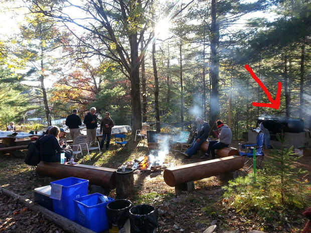 Dio lugar un poco de pensamiento antes de montar la barbacoa. Recuerde que va a dar mucho humo y el calor una vez que se encendió. Elegimos un lugar conveniente que estaba a una distancia segura de los árboles y áreas de juego. Si utiliza un motor eléctrico que también desea se encuentra cerca de una toma de corriente.