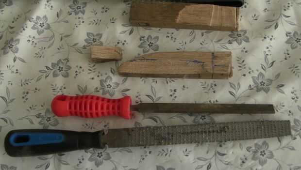 Atacas a la madera con el archivo primero unos y luego con el archivo de tamaño de grano medio en ambos lados.
