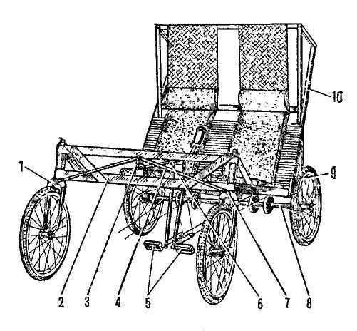 Tenía cochera para trabajo, compró algunas herramientas, hacer algunas variantes y ahora han acabado sencillo y barato HPV-cuatriciclo! Después de considerar todas las variantes posibles de triciclos, elegir coche de cuatro ruedas (cuatriciclo), debido a la estabilidad y la distribución más fácil de una pesada carga. Juntos tenemos casi 190 kilos ~ 419 libras, lo que podría ser en los límites de dichos vehículos. Manteniendo originales ruedas de MTB fue otra razón para tener cuatro de ellos.