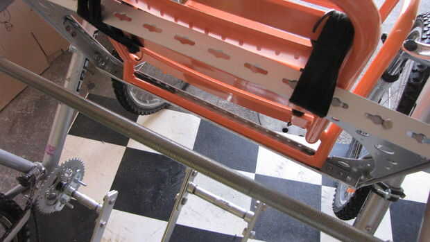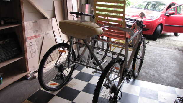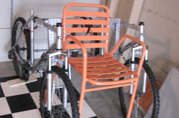 Asiento delantero fue combinado de dos sillas de jardín de aluminio. Mi "silla de montar" es DIY, algo más grande lo habitual y mucho más suave. Necesitan algunos cubriendo mejor.