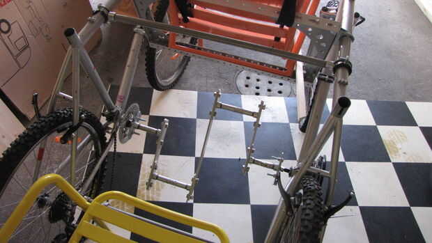 Como toda la construcción de conexión consisten en varias piezas de metal (aluminio, acero cromado, acero galvanizado, hierro gris), compré la pintura a base de buena y cubre todo, incluyendo los marcos de bicicletas. Después de eso – color rojo (para aumentar la velocidad como mi viejo amigo le gustaba decir)...