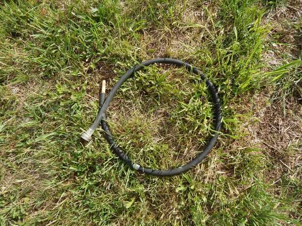 Yo suelo utilizar un pie de 3 a 5 desecho de la vieja manguera. No importa si él o su conector sale un poco como hará perder más. Si no tiene un conector hembra de agregar uno (rápido y fácil reparación de manguera para un dólar o gran, fácil y barata reparación de manguera para el jardín y en otros lugares). Cierre el otro extremo, he puesto un tapón en él o doblado sobre y sujetar con alambre, nada fancy es necesario. Un montón de agujeros de taladro.