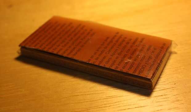Puede utilizar papel o cola para madera para fijar estas cuñas de cartón la pieza de madera contrachapada, pero he utilizado un trozo de cinta scotch (cinta de franqueo, o lo que tengas en las manos, sólo me ha gustado usar la cinta transparente para exponer la madera debajo). Solo no te olvides de ajustar el espesor del cartón para el grueso de la cinta. Corte el exceso de la cinta de los lados o plegar a su gusto.