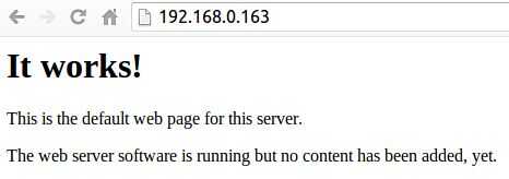 Por defecto, Apache pone un archivo HTML de prueba en la carpeta web. Esta página de web por defecto se sirve cuando usted vaya a http://localhost/ en el Pi en sí mismo, o http://localhost/ (dirección IP de cualquiera que sea el Pi es) desde otro ordenador en la red. Para encontrar la dirección IP de Pi, escriba un nombre de host-en la línea de comandos (o leer más sobre encontrar su dirección IP). Vaya a la página de web predeterminado en el Pi o desde otro ordenador en la red y usted debería ver la página web como el anterior. Esto significa que tienes Apache trabajando!