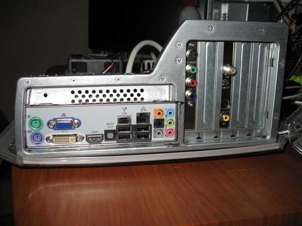 En este caso, la placa de I/O trasera es parte del metal para la parte entera trasera. Esto significaba que tenía que cortar un rectángulo de la placa con el fin de hacer espacio para la placa base puertos y la nueva placa de I/O.