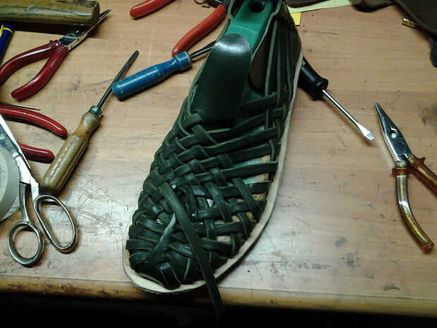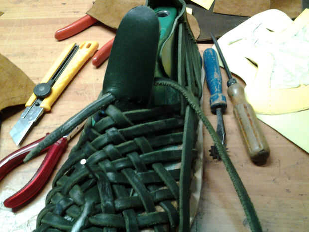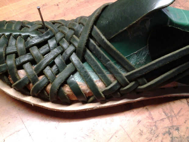 un comienzo de la armadura alrededor de paso desde el espacio dejando sacar el clavo y vuelta para el otro agujero oblongo golpes