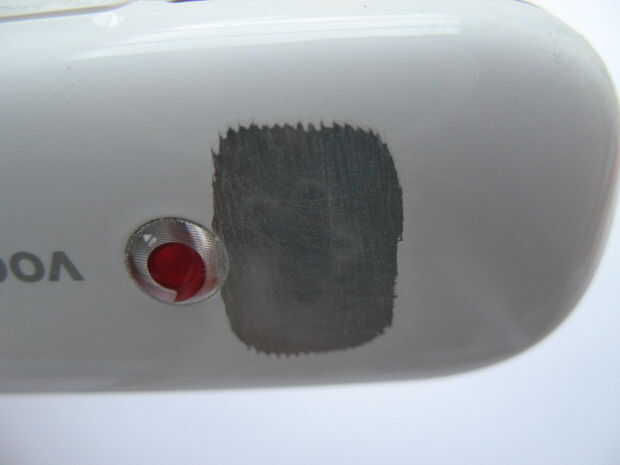 Simplemente tomé un archivo plano al área sobre el logo de Vodafone para quitar la capa Semiopaco y luego pulido con un papel de lija de grano fino.