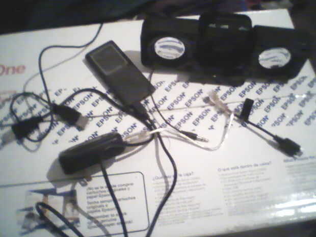 Que soy demasiado barato para comprar un estéreo verdadero, puesto que el original murió y todavía está conectado al sistema de altavoces. Así que de vez en cuando me gusta tomarme mi MP4 para un paseo... Tengo unos altavoces también, y aquí está mi "gig" para referencia. Lo mejor es que usted puede utilizar este sistema de sonido pequeño en cualquier coche, bueno si usted tiene una flota de basura, como lo hago. También tengo una caravana de Opala de GM de 1982 que no tiene ningún sistema de sonido, pero tiene un buen encendedor, así que puedo colgar de todo, escuchar música y cargar mi teléfono celular al mismo tiempo.