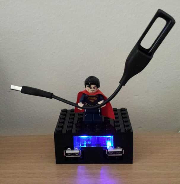 hice esto ahora con los niños, es el circuito de un concentrador USB barato en una caja de Lego. Parece más fresco que el original y cuenta con minifigura opcional cable titulares!
