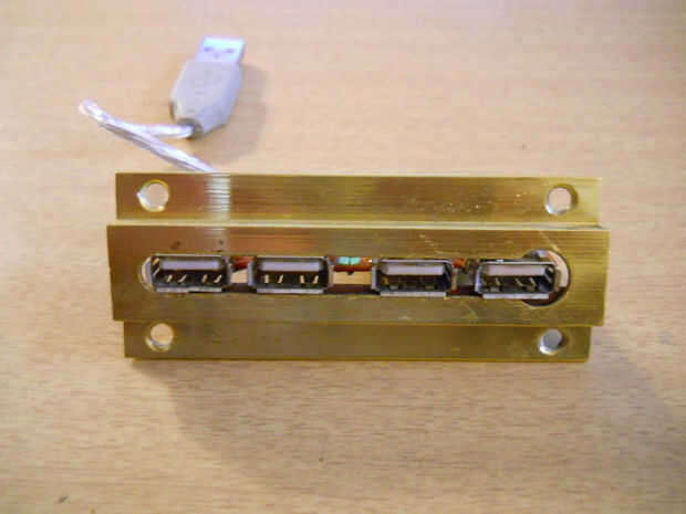 Pensé en instalar el cubo en una lata Altoids y corte agujeros en la lata, para llenar los espacios entre los puertos, pero sólo parecía camino a muchos problemas, así que decidí omitir esto. Más me gusta de la manera que el LED brilla a través del centro del eje ;-)