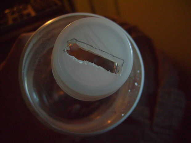 Qué es trace una caja rectangular de la tapa de la botella y utilizar la dremel para cortar hacia fuera.