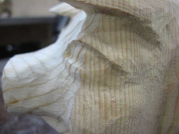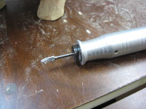La cola fue tallada hacia fuera con la misma broca pequeña.