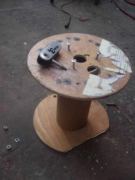 Con la ayuda de mi papá y mi hermano nos desmonte el cable taburete sacar el tubo de cartón que es la parte principal de la hucha utilizando como recipiente de las monedas.
