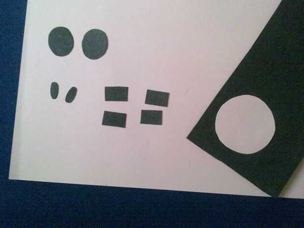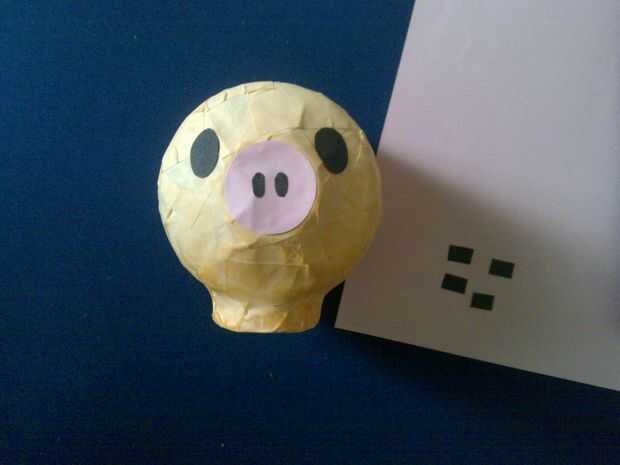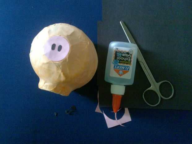 Haz tu papel de color negro y cortar 2 piezas de círculos de 1 cm de diámetro para los ojos, 2 formas de óvalo pequeño para su cerdo nariz 4 rectángulos pequeños para los pies y un círculo de color de rosa 1 pulgada de diámetro para la nariz