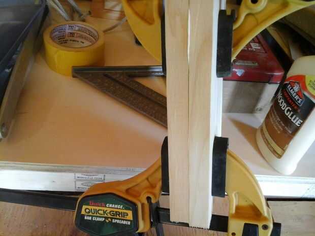 En primer lugar, necesitas cuatro piezas de madera que son aproximadamente del mismo tamaño que la plantilla. Ahora necesita unir dos de ellos. Asegúrese de que un extremo es aún perfectamente.