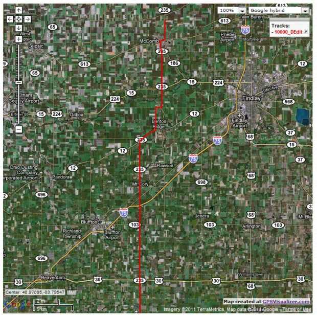 Este es el resultado de una de mis pruebas donde rastrearon mi coche en una porción de un disco.