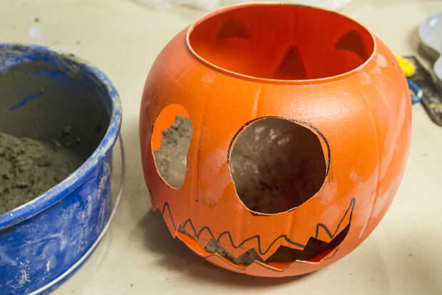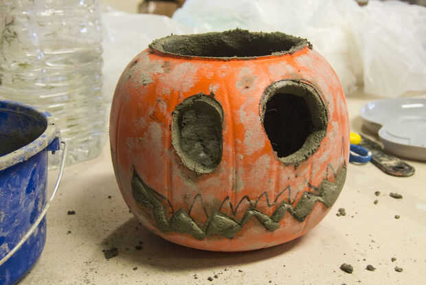 Agujeros más grandes se pueden dejar abiertos, pero en este caso la boca tuvo que ser embalado y luego talladas lejos. Si no hacemos esto, las paredes depresión probablemente. Necesitan un poco de ayuda al principio, pero como la mezcla endurece para arriba, a permanecer en el lugar.