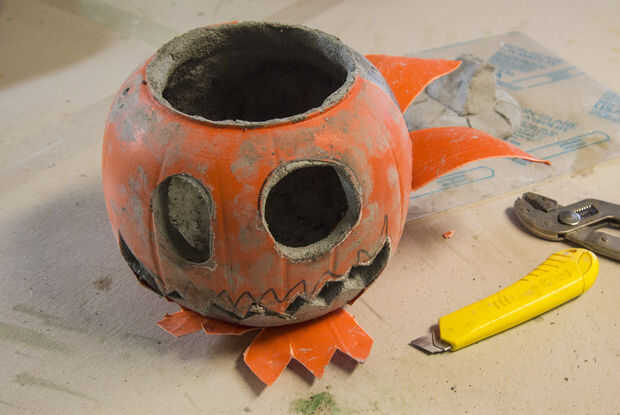 El molde de plástico tiene que debe recortarse. Hacerlo con cuidado para no cortar en la pieza o a ti mismo.
