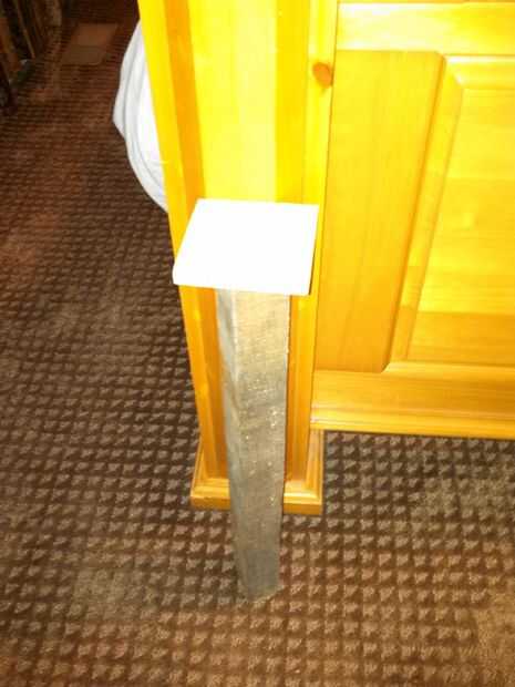 Es simplemente un pedazo de chatarra 2 x 4 de mi garaje con un trozo de madera cuadrado conectado un tornillo. Cortar la Plaza de la madera contrachapada de 1/8" menos que la apertura para hacer un ajuste fácil.