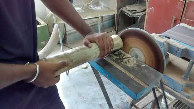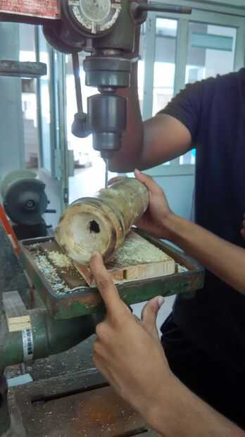 Hemos alisado el extremo del bambú en forma circular primero. Después de eso, marcamos los agujeros en el lado en forma de espiral. Se procedió a utilizar la máquina de perforación para perforar los agujeros.