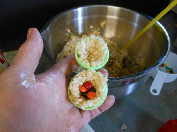 Hueco de crujiente arroz huevos (9 / 14 paso)