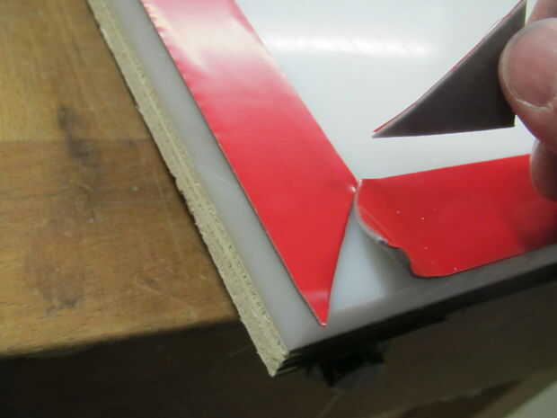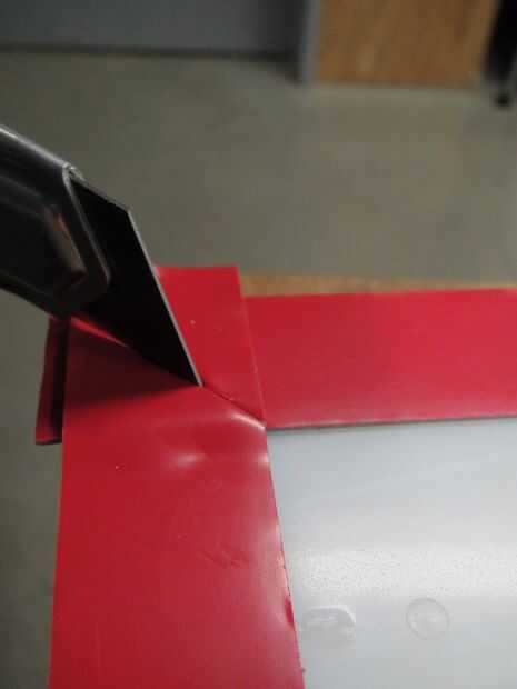 -Agregar un límite de cinta de adhesivo doble cara al aire libre y corte de inglete las esquinas